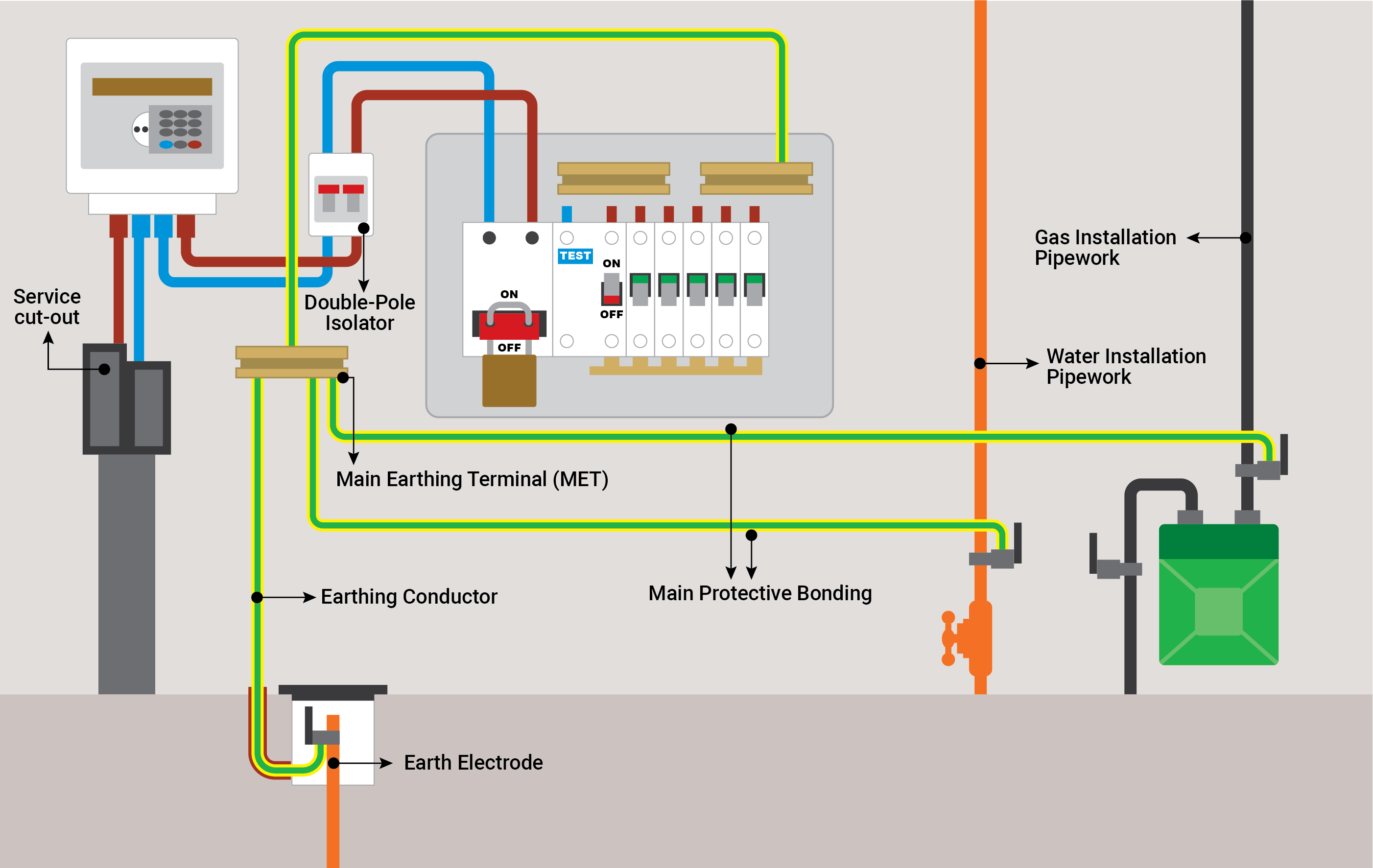 - Protective Bonding: Ensures all conductive parts within the installation are at the same potential to reduce shock risks.